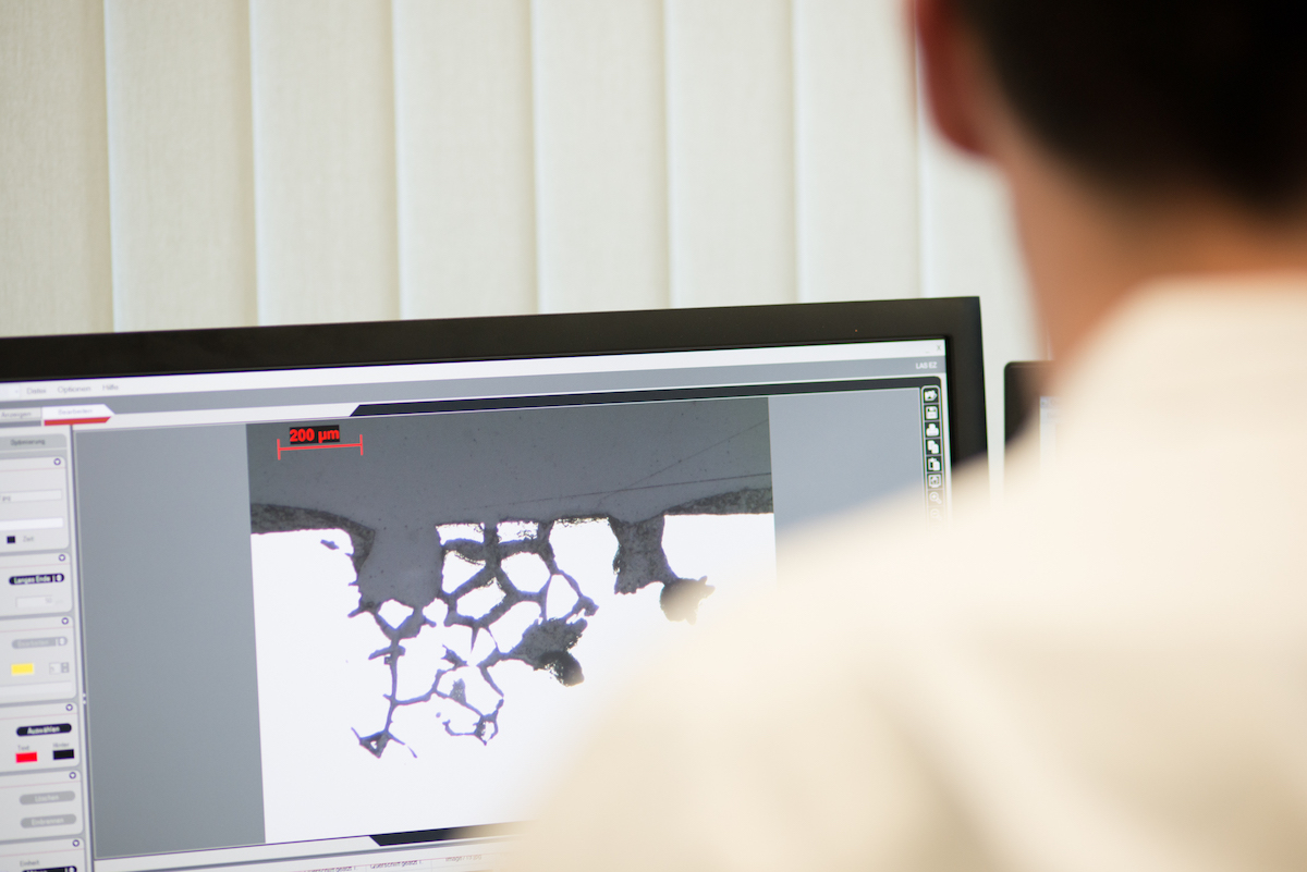 Produktionsbegleitende Prüfungen mit Rasterelektronenmikroskopie, Korrosionsanalysen und Schichtdickenmessungen. Schnelle Reaktionszeiten bei dringenden Aufträgen. Akkreditierte Verfahren für objektive Qualitätssicherung.